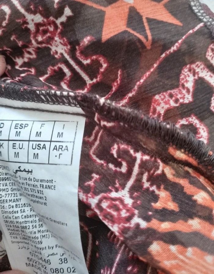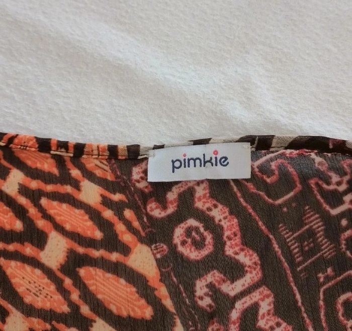 Tunique fluide femme taille 38. Marque PIMKIE. Avec un débardeur dessous ou en paréo.En excellent état. Longueur dos 72,5 cm Couleur ocre, marron, orange. Vous pouvez cliquer sur le lien ci-dessous pour voir tout mon 38 #patriciaponziotaille38