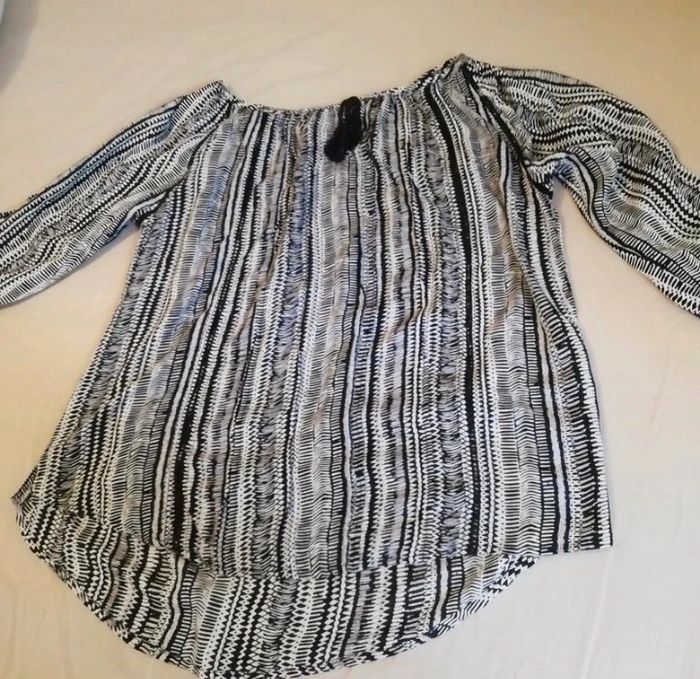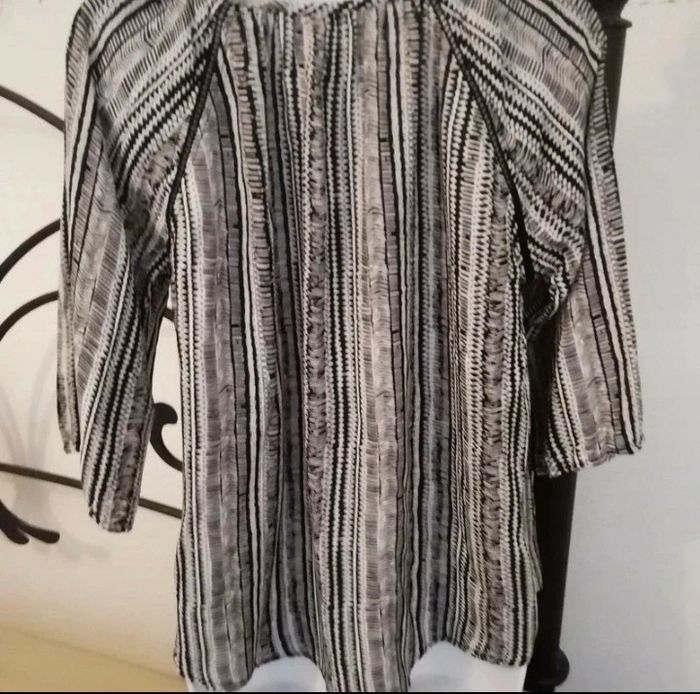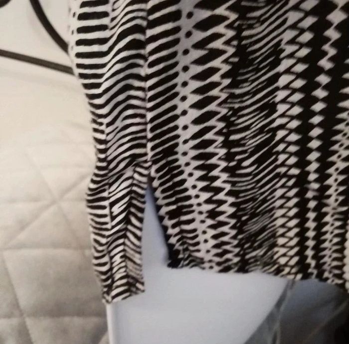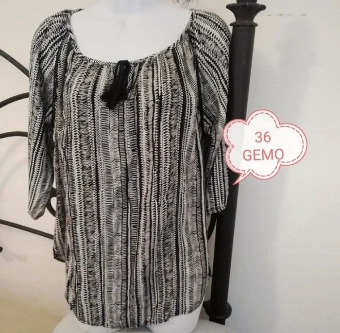 Tunique femme taille 36. En excellent état. Couleur noir blanc. Marque GEMO. Dos longueur 63 cm, devant 56 cm. Manches 3/4. Vous pouvez cliquer sur le lien ci-dessous pour voir tout mon 36 #patriciaponziotaille36