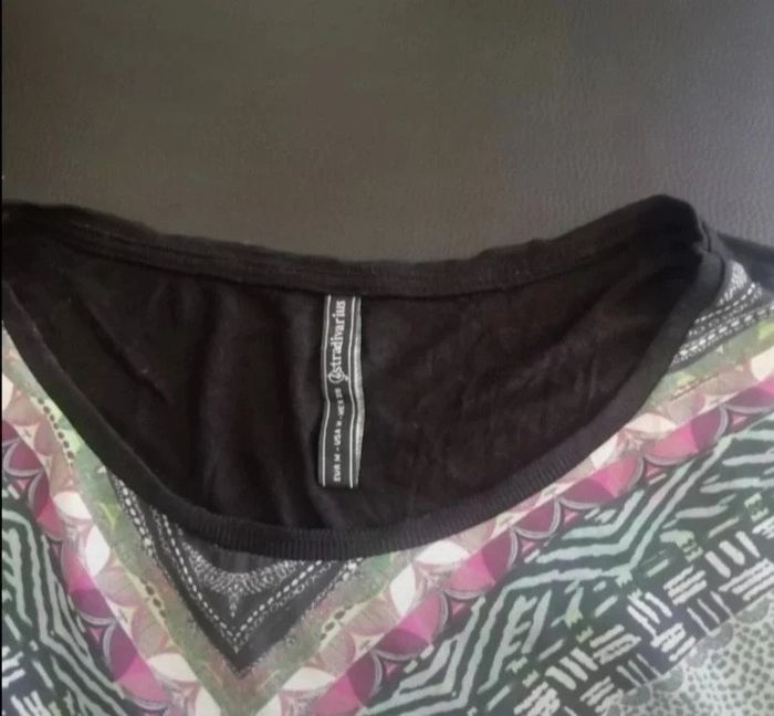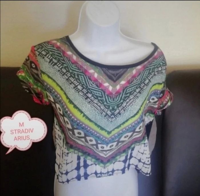 Très beau tee shirt femme taille 38. En excellent état. Marque STRADIVARIUS. Devant fluide polyester et dos coton. Multicolor Vous pouvez cliquer sur le lien ci-dessous pour voir tout mon 38 #patriciaponziotaille38