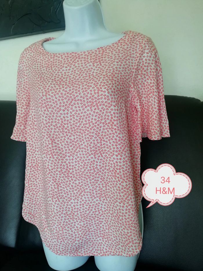 Très belle tunique femme taille 34. En excellent état comme neuve. Marque H&M. Petites fleurs orangés sur fond blanc. Longueur 62 cm Vous pouvez cliquer sur le lien ci-dessous pour voir tout mon 34 #patriciaponziotaille34