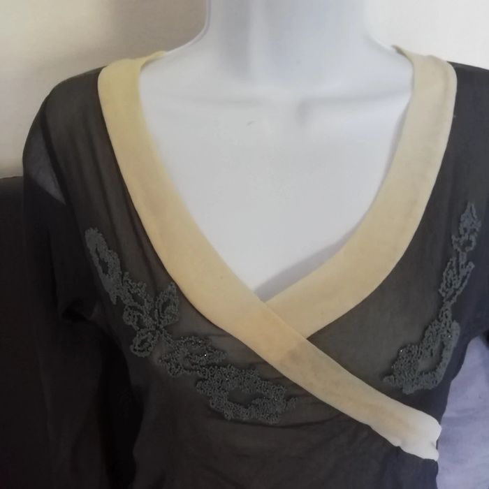 Très beau haut femme, taille 3 (44). Excellent état. Marque JACQUELINE RIU. Couleur gris foncé /beige #patriciaponziotaille44