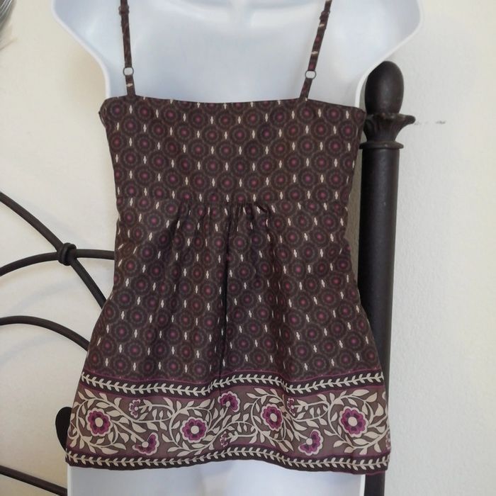 Haut été femme XS. Style blouse. Fermeture éclair sur le côté pour faciliter l'enfulage. Bretelles reglables. Marque LA REDOUTE. Excellent état. Couleur marron /rose foncé ou violine Vous pouvez cliquer sur le lien ci-dessous pour voir tout mon 34 #patriciaponziotaille34