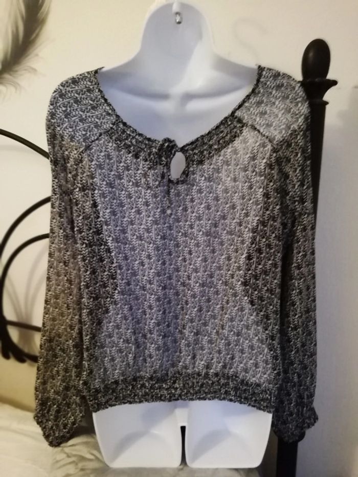 Haut voile femme, taille 38. Très bon état. Couleur noire /blanc. A porter sur un débardeur car transparent Vous pouvez cliquer sur le lien ci-dessous pour voir tout mon 38 #patriciaponziotaille38