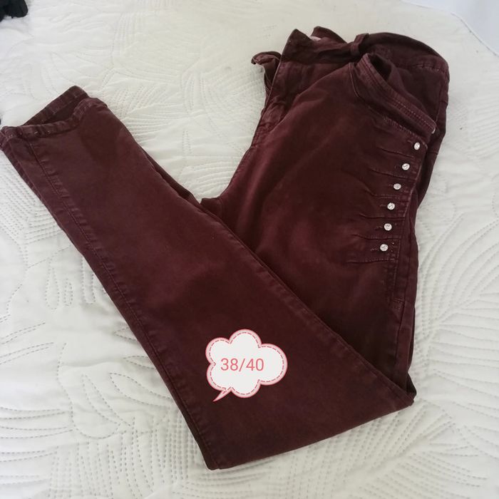 Pantalon slim femme 38/40. Très peu porté. Couleur bordeaux/prune. Coton/élastane Vous pouvez cliquer sur le lien ci-dessous pour voir tout mon 38 #patriciaponziotaille38 #patriciaponziotaille40
