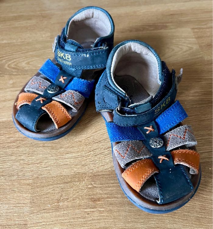 Nue pieds enfant acheté d’occasion jamais portée par mon fils. J’offre la seconde paire (beige foncé) car le dessus du talon est abîmé voir photo