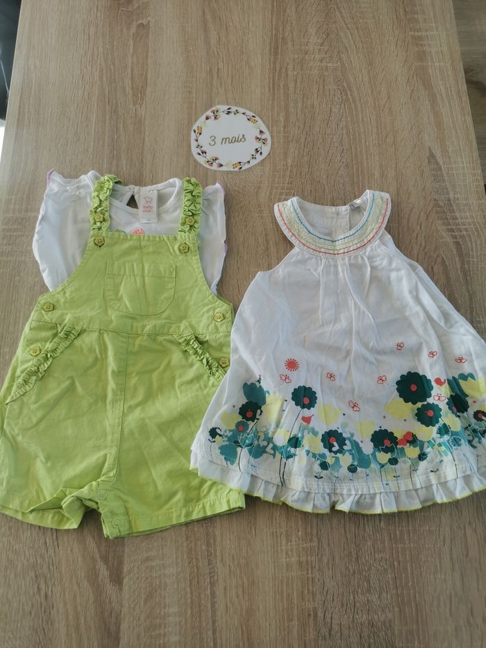 Lot été bébé fille 3mois robe, salopette et t-shirt orchestra, dpam, bébé club tbe - photo numéro 1