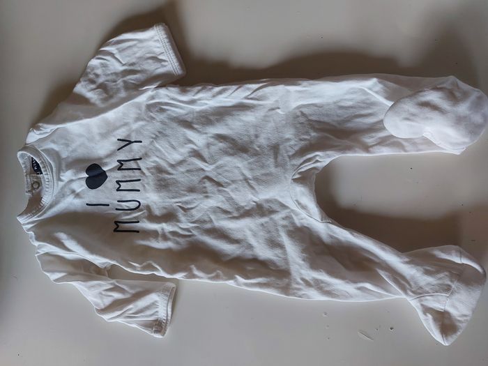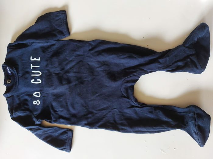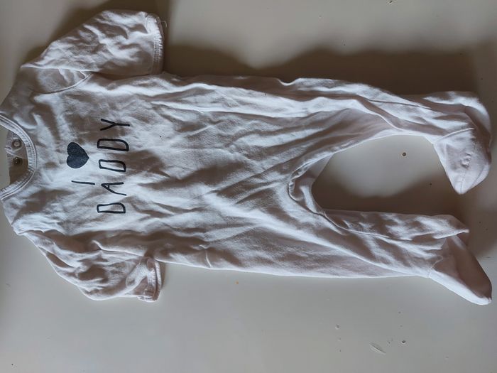 Lot de 4 pyjamas fins Kiabi taille 3 mois. Bon état général excepté le "I love Daddy" dont la couleur bleu est un peu passée (voir photo)