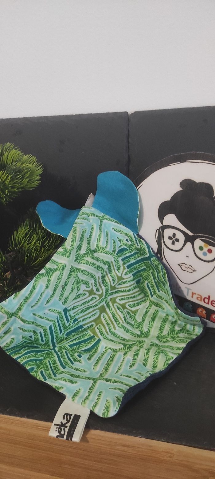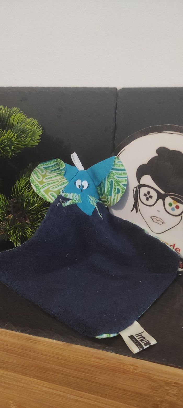 doudou éléphant imaneka africa soul souris bleu marine vert éponge Artisanale - photo numéro 2