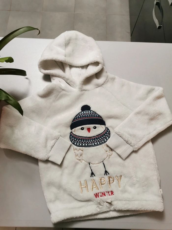 Sweet à capuche, polaire, tout doux, okaidi 8 ans. Motif oiseau #katia35450huitansf