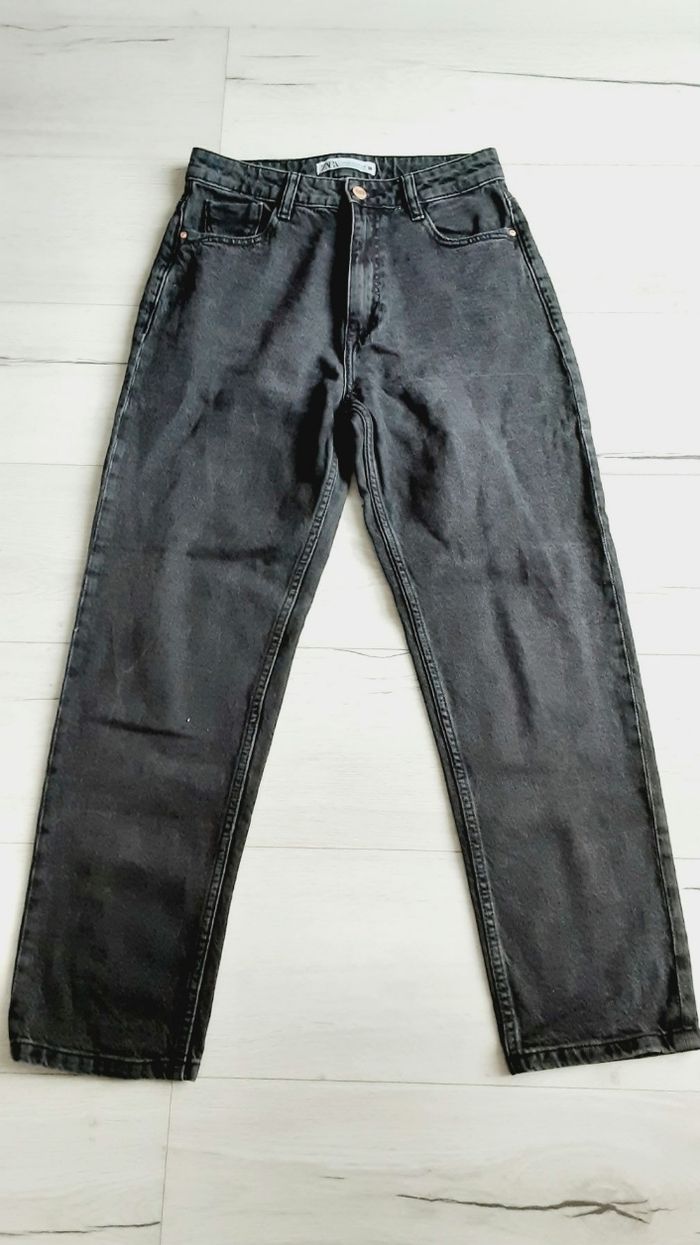 Vêtement femme pantalon large jean gris noir Zara taille 38 - photo numéro 1