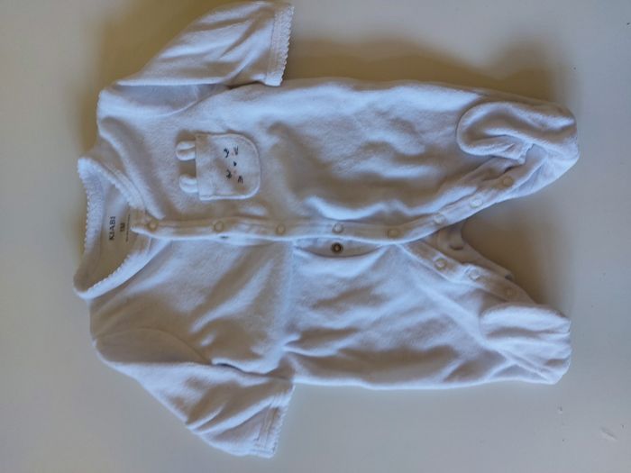 Pyjama velours Kiabi taille 1 mois. Peu porté encore en très bon état.