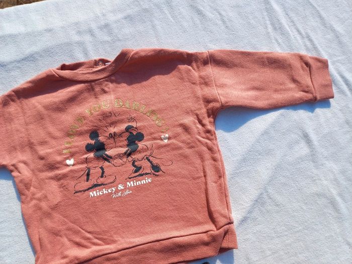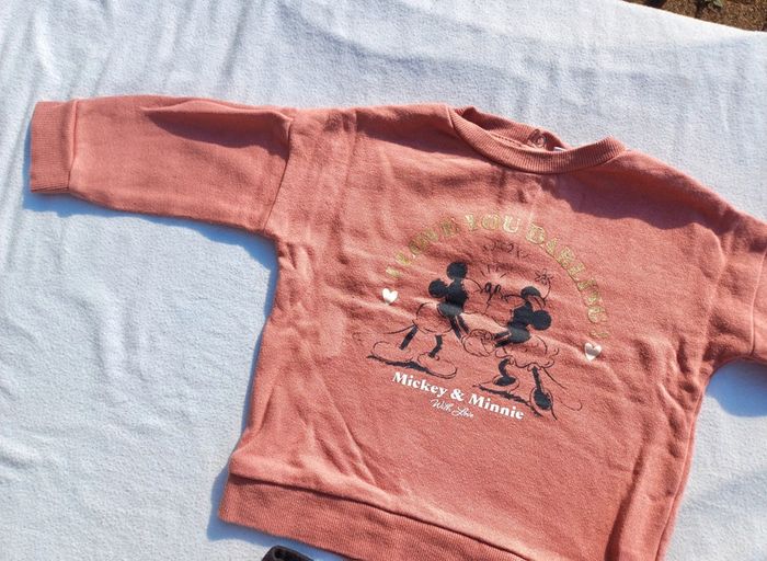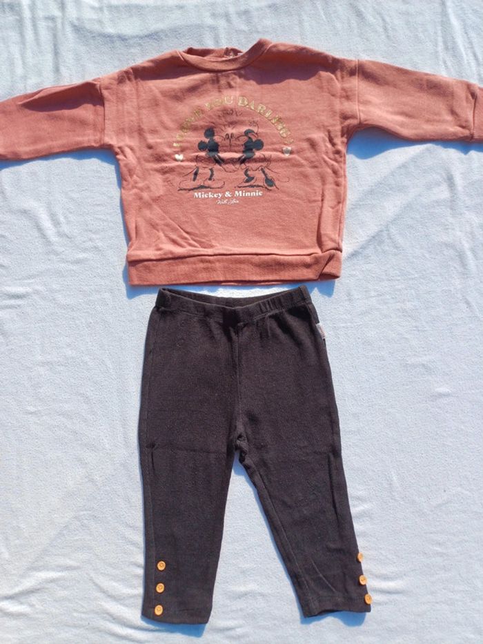 Vends Ensemble Minnie Pour fille Taille 18 mois Marque Disney Comprenant Un pull Avec motifs Mickey et Minnie Avec inscription dorée En très bon état Un legging noir Avec petit boutons décoratifs sur le bas Inscription Minnie sur le côté En bon état Prix : 7 euros Maison non fumeur et sans animaux