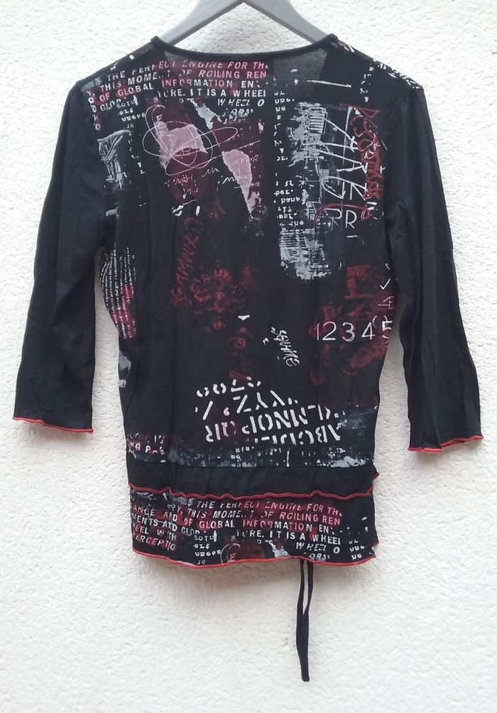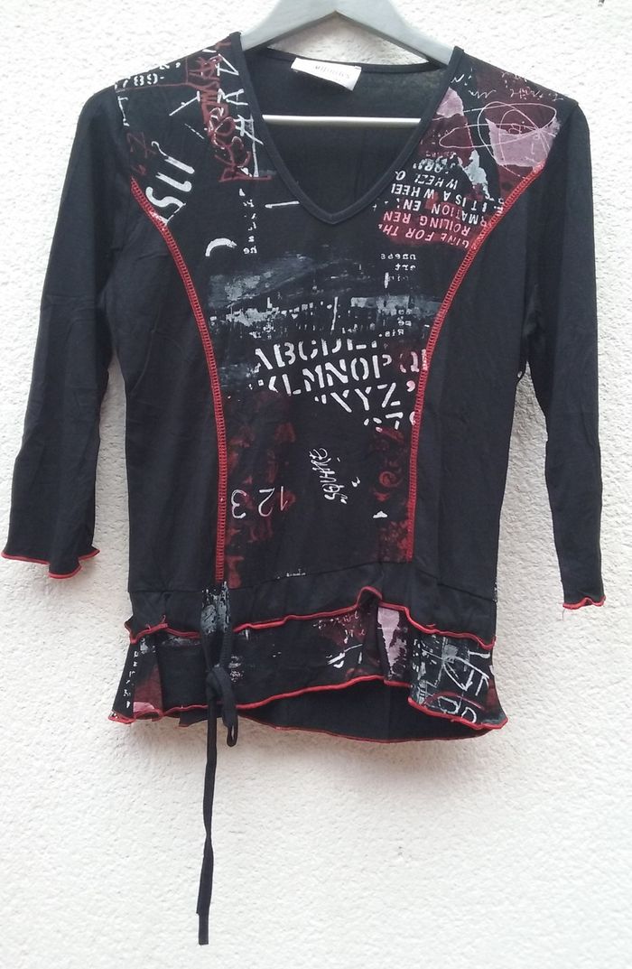 Haut Affinités, col V, manches 3/4, possibilité de serrer la taille grâce à un cordon.