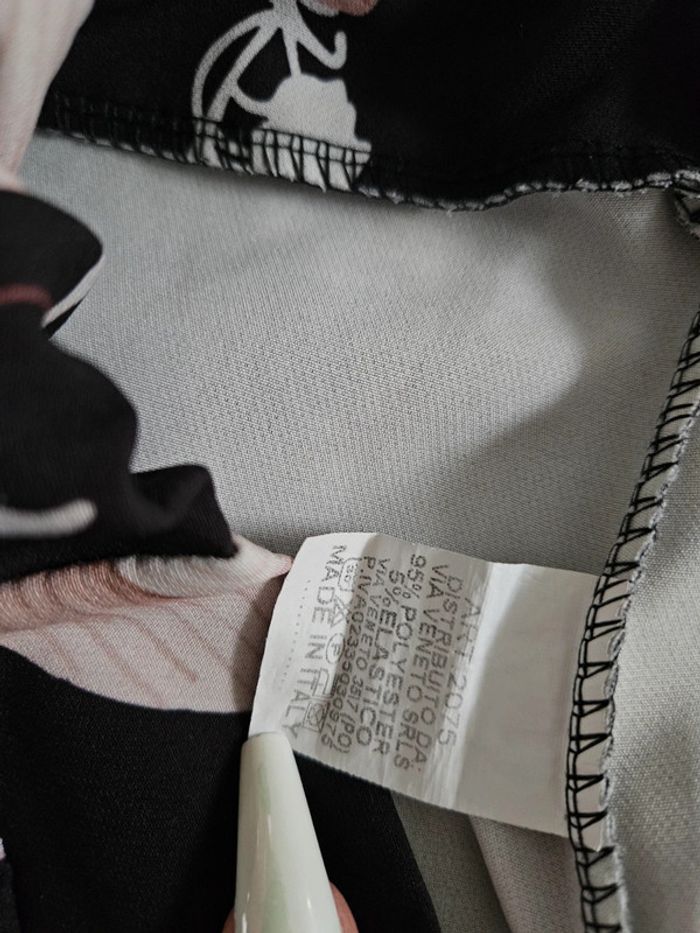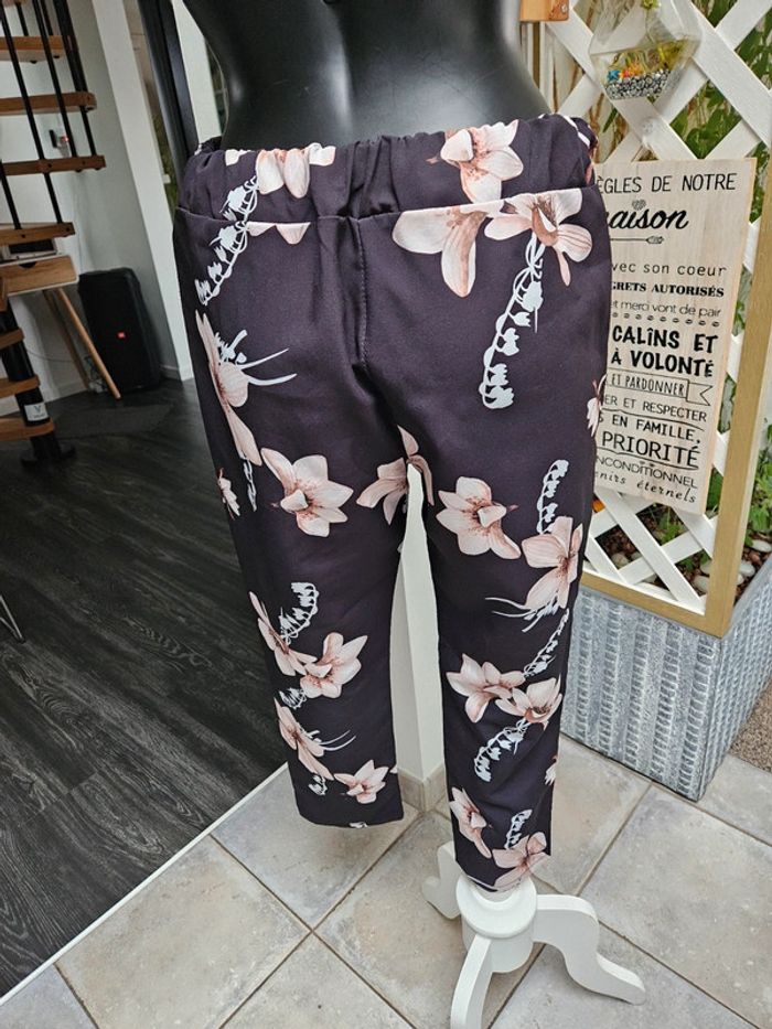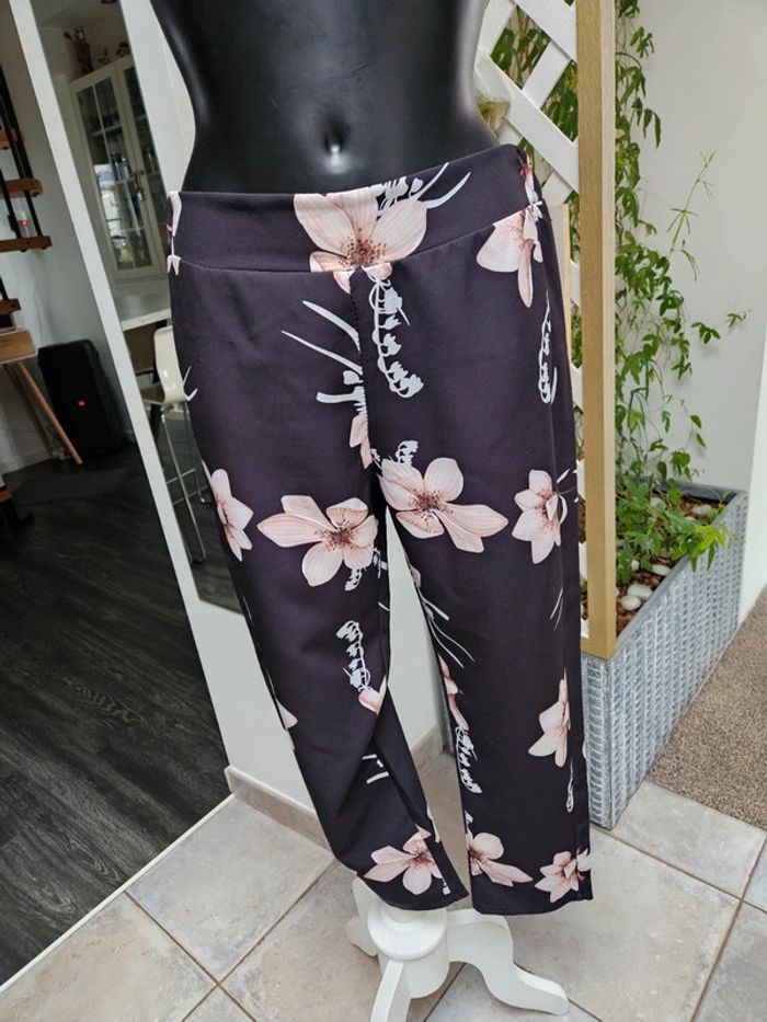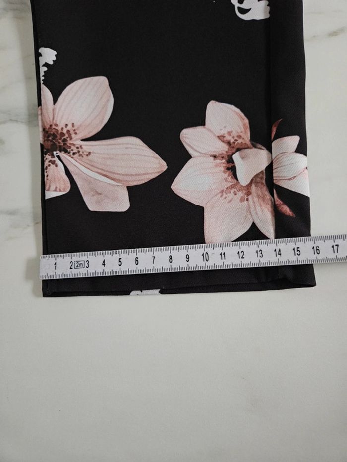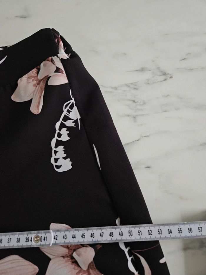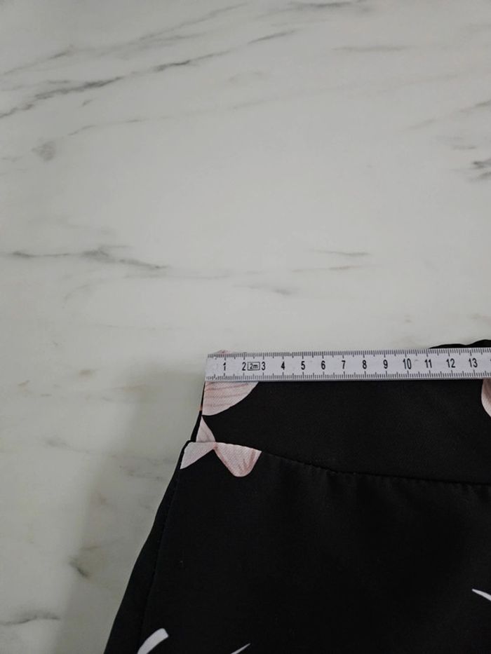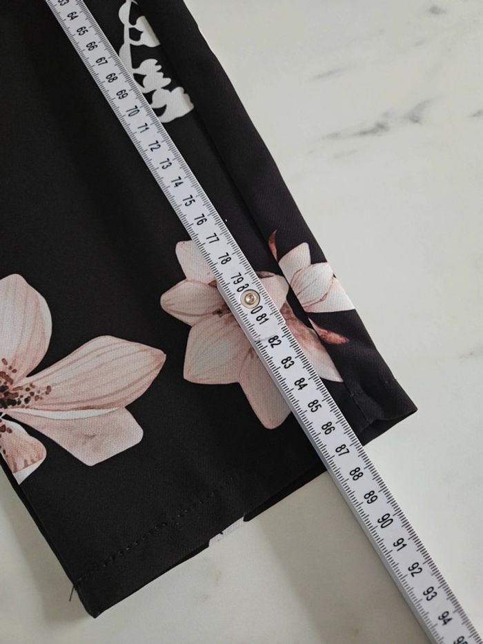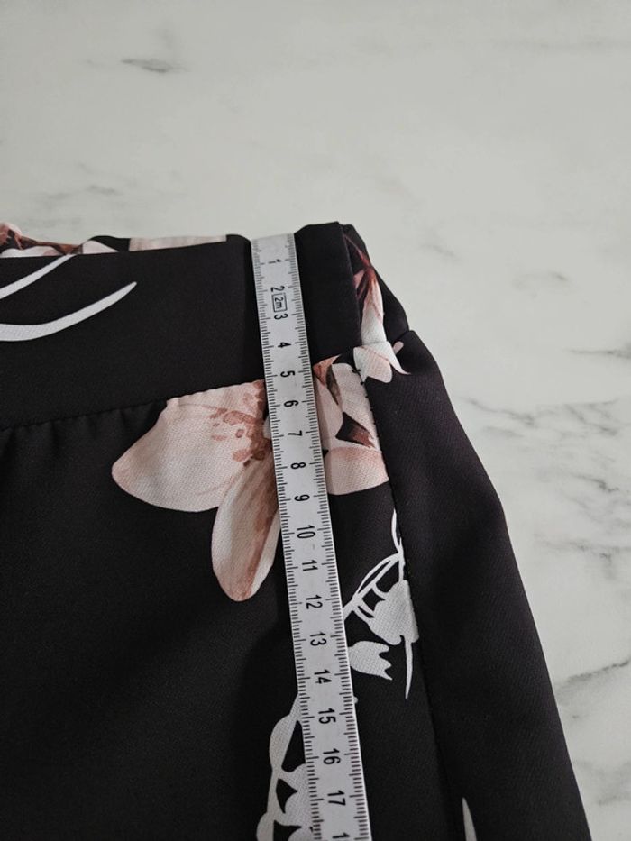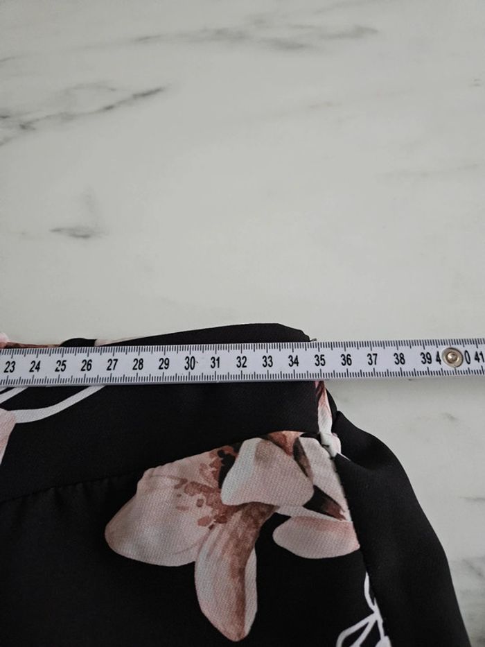 Noir à fleurs. Taille élastique par l'arrière. En état impeccable. Dimensions sur les photos