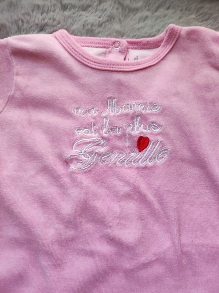 Pyjama 1 pièce rose Inscription ma mamie est la plus gentille Taille 9 mois Très bon état sauf un petit point sur le long de la jambe droite (voir dernière photo 😊) Mes autres articles en 9 mois remise activée : #latetelledu29fille9mois #pyjama9mois #9moisfille #fille9mois #dorsbien9moisfille #dorsbienfille9mois #pyjama1piece9mois