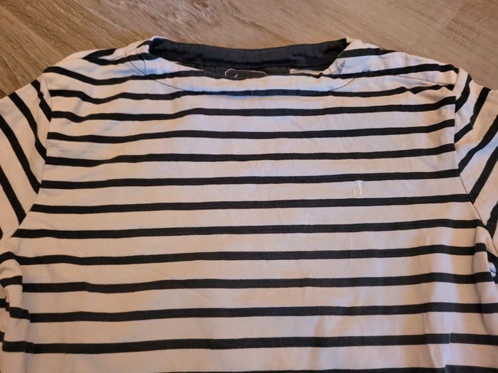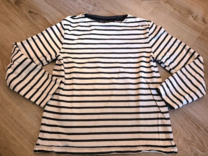 Haut blanc à rayures bleues manches longues marque Jacadi 10 ans