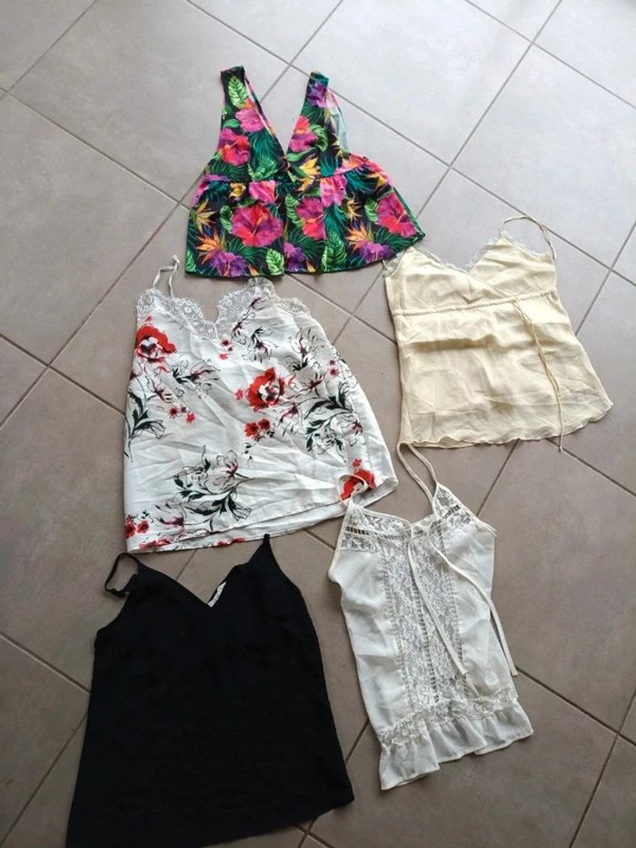 Un lot de 5 top . Voile dentelle soie etc.... #tchoune13femme36 Et j offre celui là voir le lien https://www.vinted.fr/items/2039761506-croc-top-fluide-creme