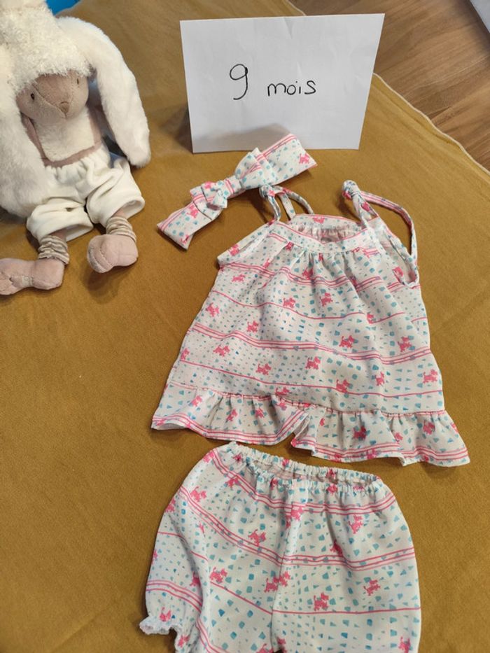 Jolie ensemble bloomer + débardeur + bandeau Fait main Correspond à un 9 mois Parfait état, porté 1 fois #titia5452bebe9mois #faitmain