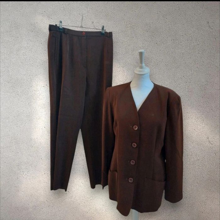 🌟 Élégant tailleur marron taille 42 / sur la photo la couleur du pantalon diffère de celle de la veste mais ils sont bien tous les 2 de la même couleur🌟