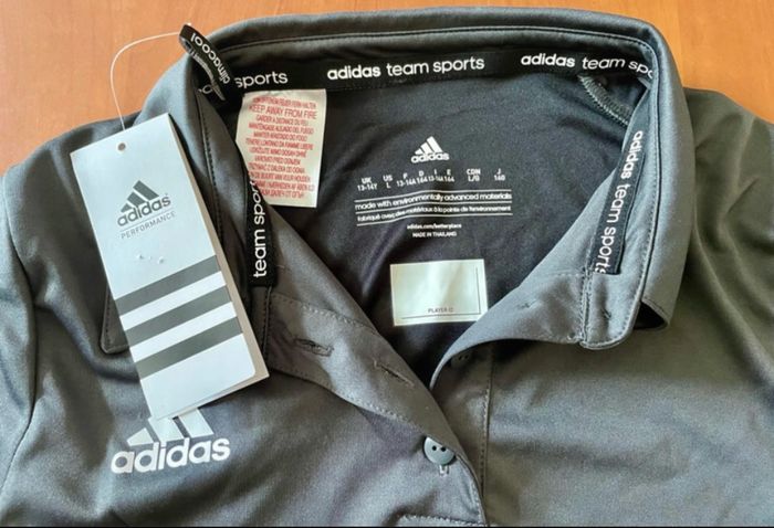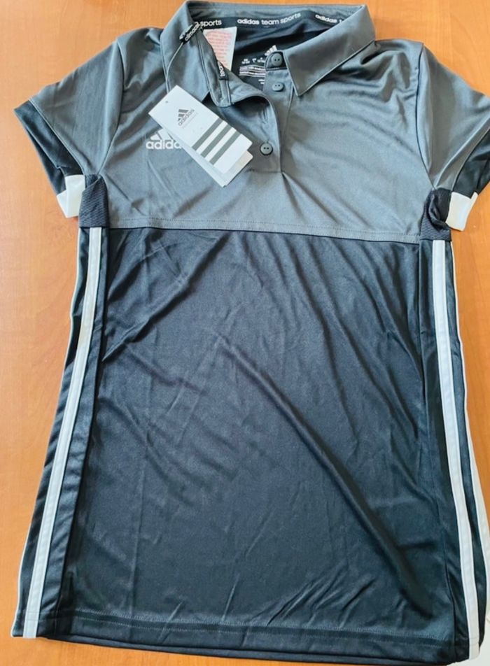 Polo Adidas noir/gris 13/14 ans Polyester Jamais porté (étiquette toujours accrochée)