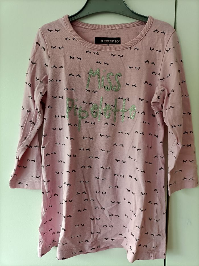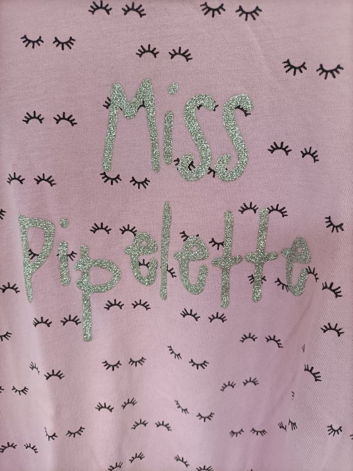 Chemise de nuit en coton rose. " Miss pipelette" écrit en paillettes argentées. Taille 3 ans. 1€