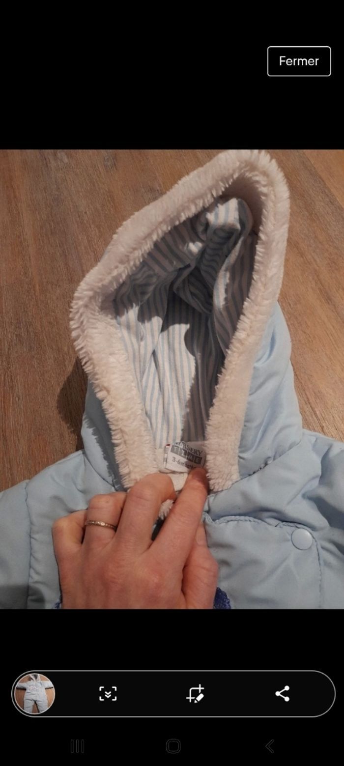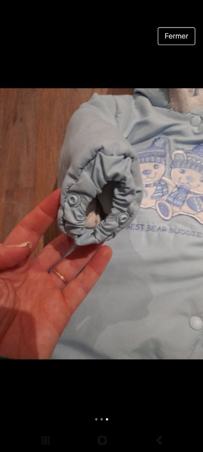 #jessl8262garcon3mois Combinaison bleu ourson taille 3/6mois pression au niveau des poignets je n'ai plus les mouffles