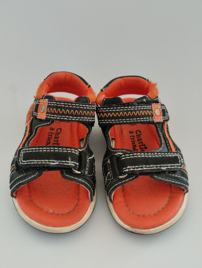 Sandales mixtes taille 22 de marque charlie&friends. Anthracite et orange. Attaches scratch.