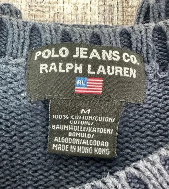 Pull col rond ralph lauren bleu marine logo drapeau USA flag taille M 6A - photo numéro 4