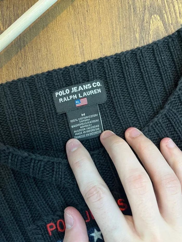 Pull col rond ralph lauren noir logo drapeau flag taille M 782E - photo numéro 4