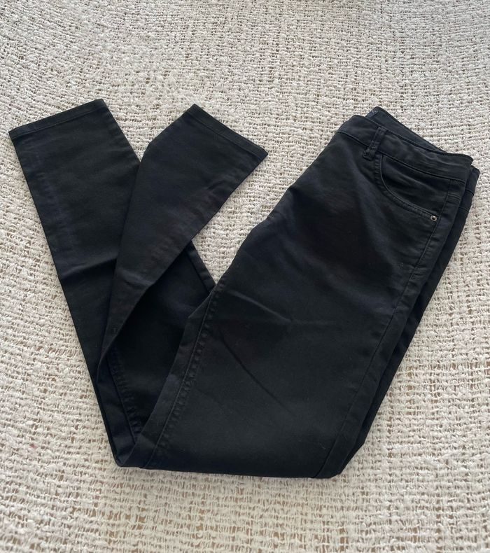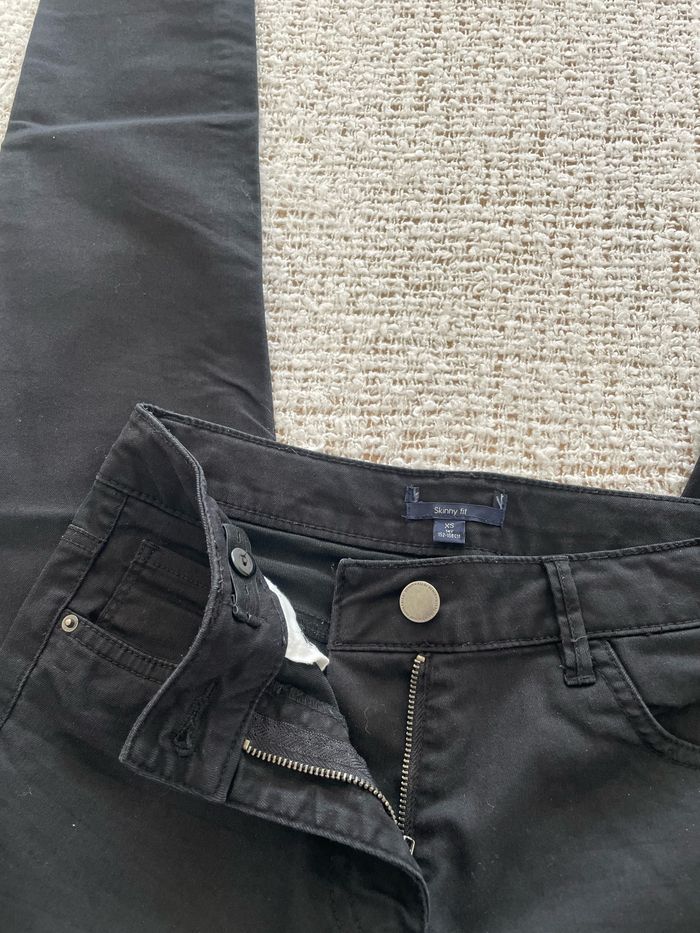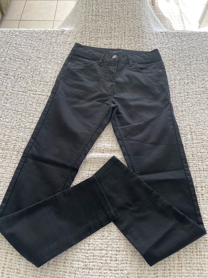 Pantalon slim noir « Kiabi » (la marque n’apparaît plus mais on reconnaît l’étiquette) taille XS ou 14 ans la taille peut se régler de l’intérieur jamais porté TBE Tour de taille 35 cm Hauteur de la taille 24 cm Longueur des jambes 75 cm #sandra13190femmestailleXS #sandra13190filles14ans