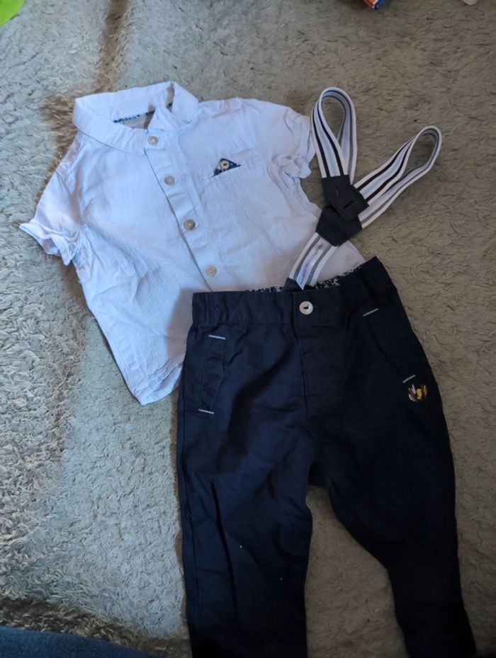 Ensemble chemise manches courtes et pantalon bretelles 9 mois