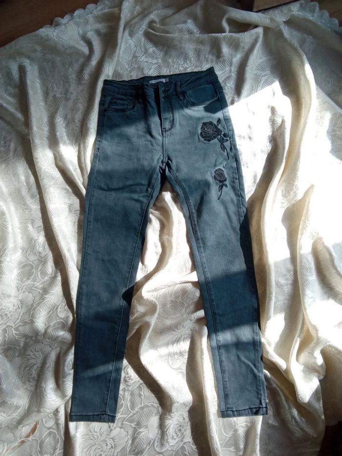 Jeans Gémo Noir motif fleur brode Taille 36 #femme36domi045 #gemo