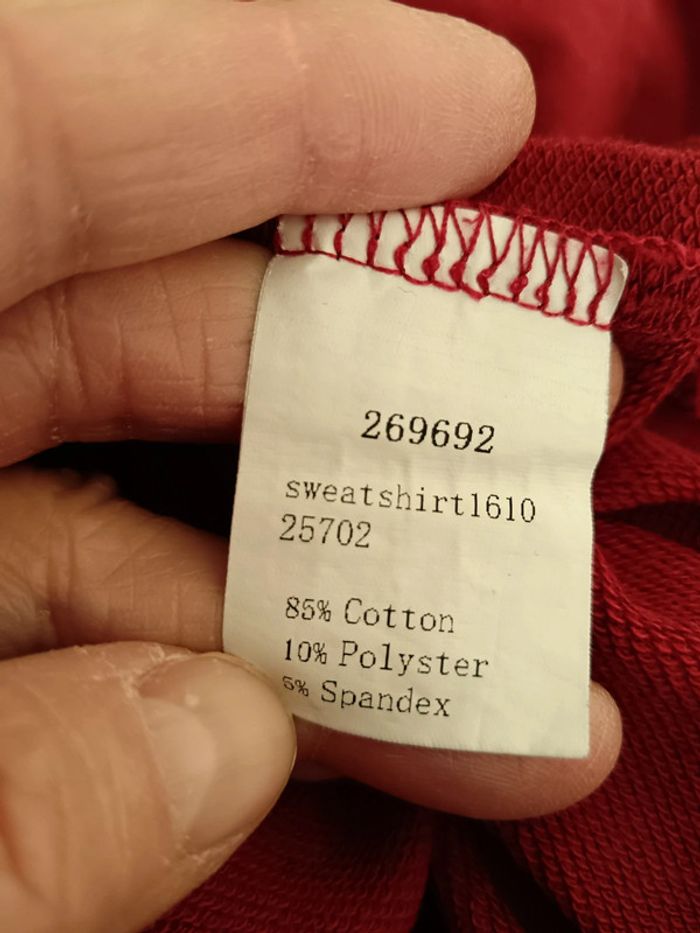 Sweat rouge Court Arrive niveau taille Pas d étiquette taille Porte pour une taille 40 Mesure aisselle 48