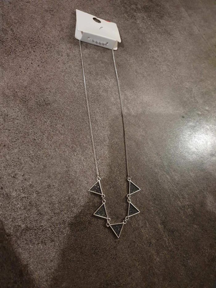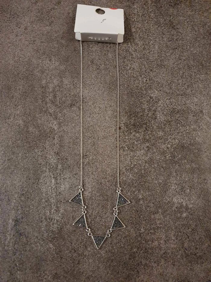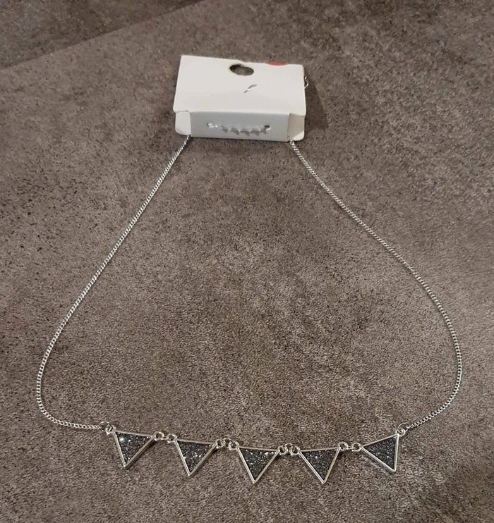 collier fantaisie 5 triangles brillants sur chaine argentée neuf #armiligo_bijoufantaisie