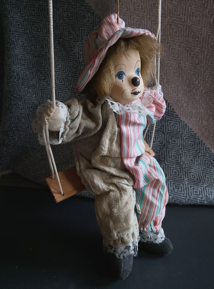 Clown sur balançoire Etat: bon, vêtement décolorés