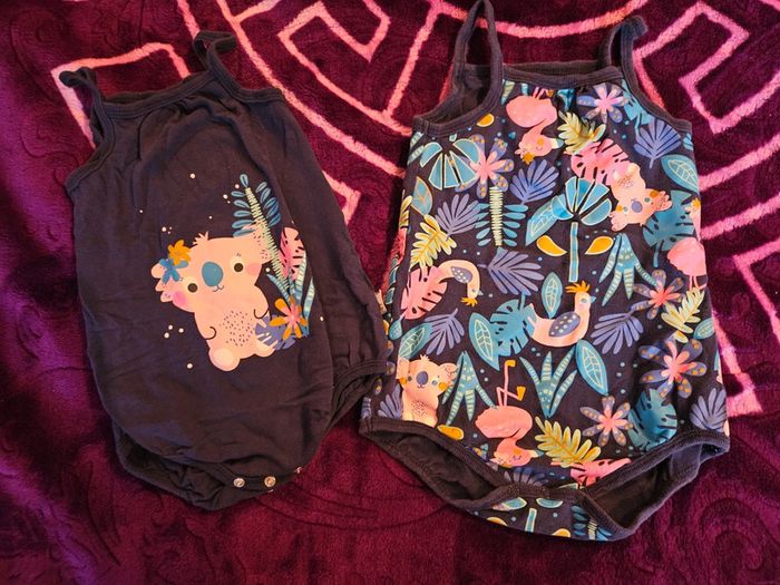 #kat091211_18_24mois Lot deux bodies manches courts a bretelles Pas de taches ni de trous. Motif koala Le dessin commence légèrement à craqueler, voir photos N'hésitez pas à créer des lots et à faire des offres 😊