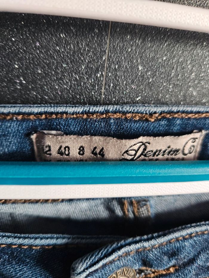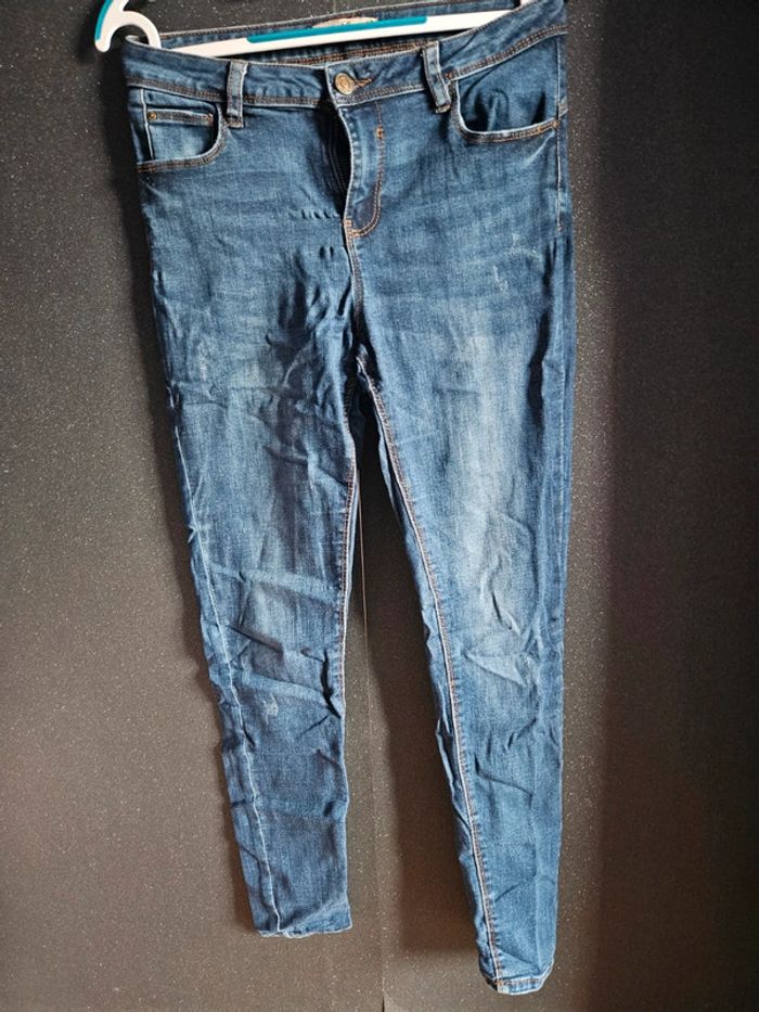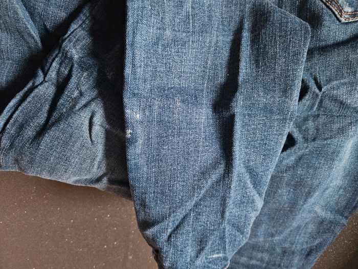 Jean effet craqué leger Peu porté. Toute petite tâche à l'arrière, mais se voit à peine avec l'effet du jean, voir photo N'hésitez pas à faire des offres et créer des lots 😊
