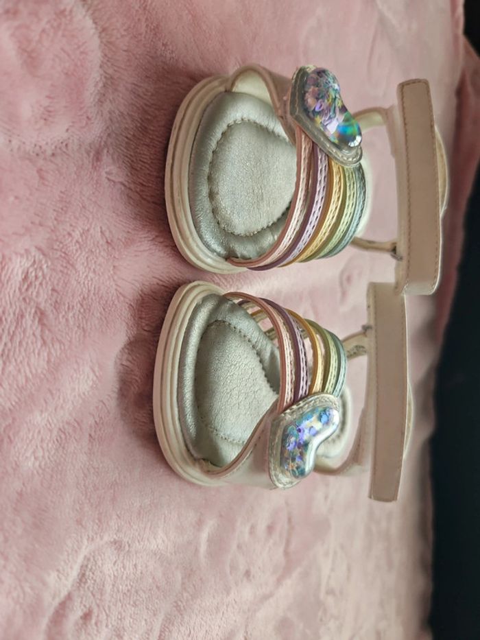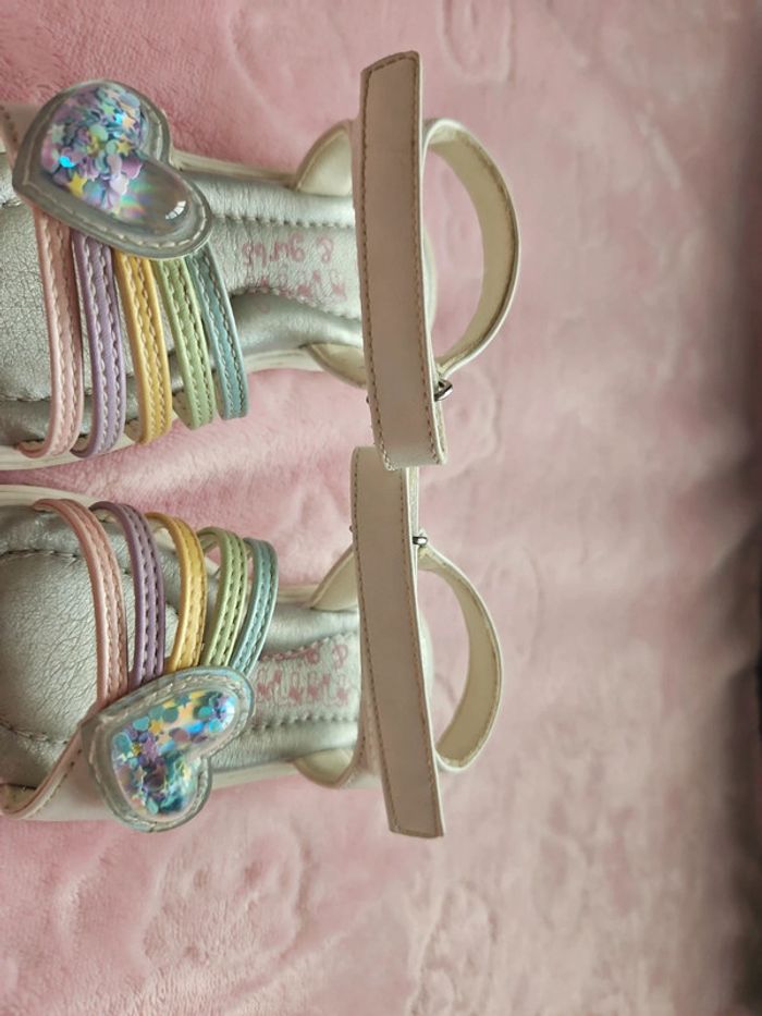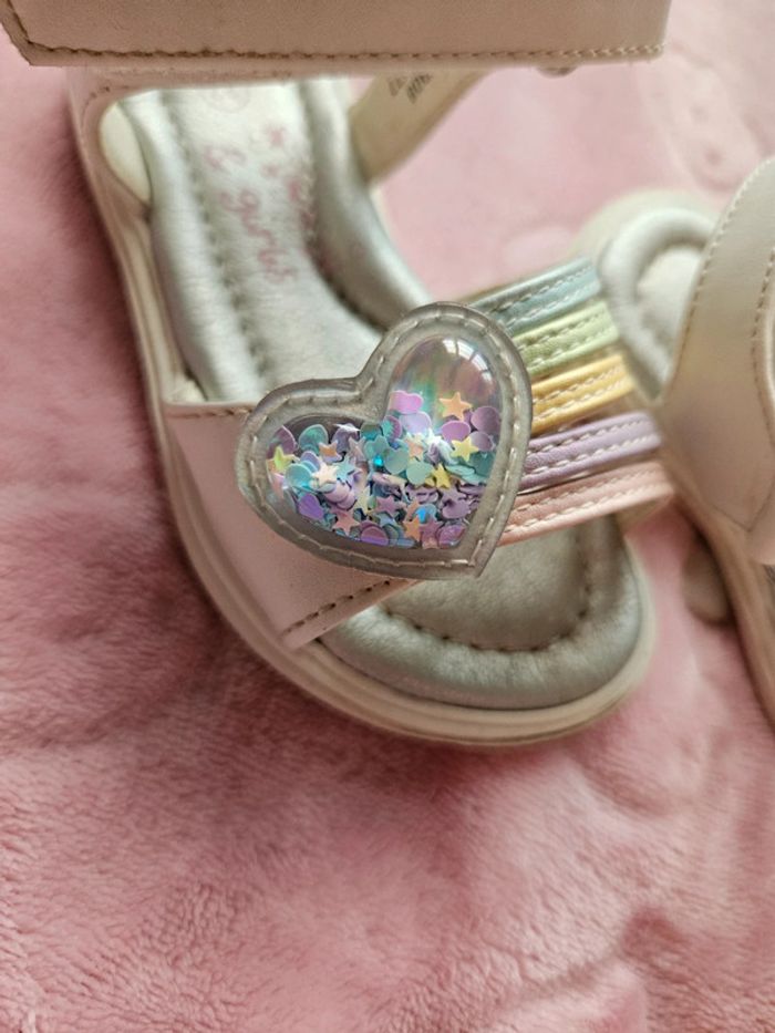 Claquettes avec coeur en gel, les petits cœurs et etoiles bougent Ouverture facile a scratch Semelles en parfaite état, juate besoin d'un petit nettoyage, portés très peu N'hésitez pas à faire des offres et créer des lots 😊
