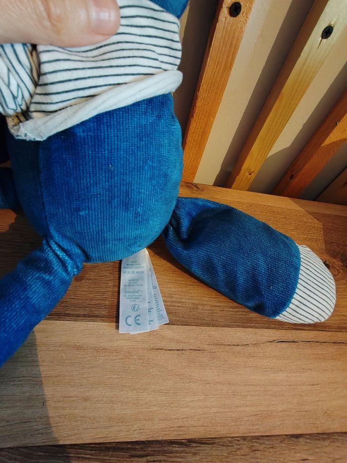 Doudou Renard bleu foncé et blanc t-shirt rayé OBAIBI Tbe Étiquette marque présente 9.90 euros Envoi en relais