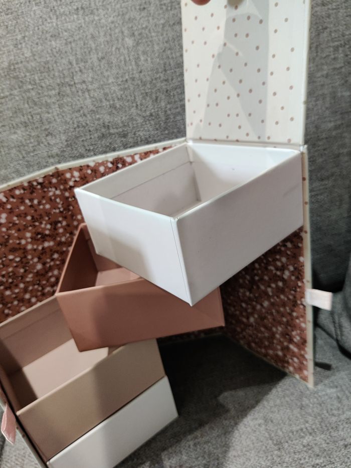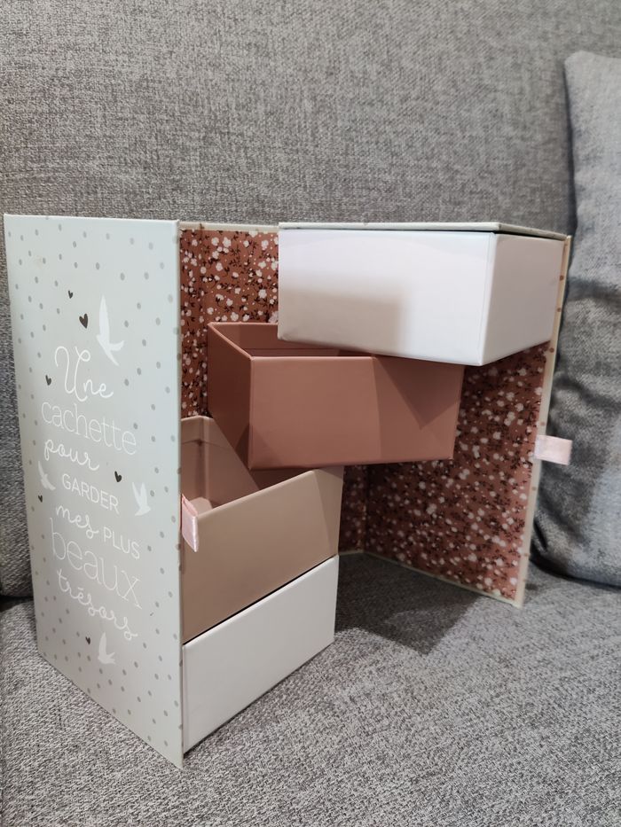 Boîte rangement 4 compartiments bijoux grise et rose pastel Atmosphéra