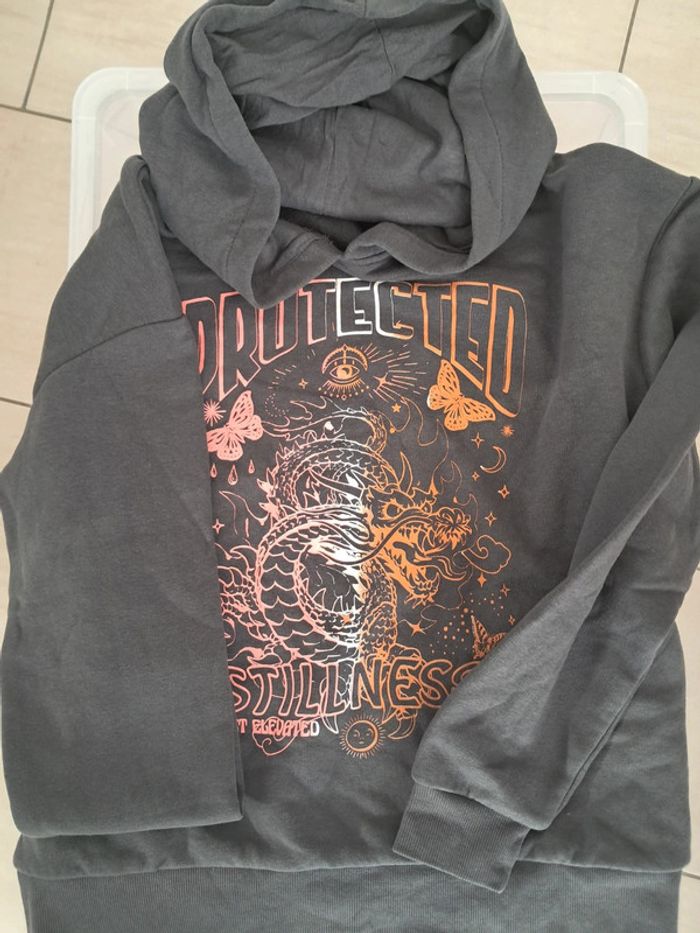 Sweat-shirt à capuche, taille XS, marque kiabi, très bon état.