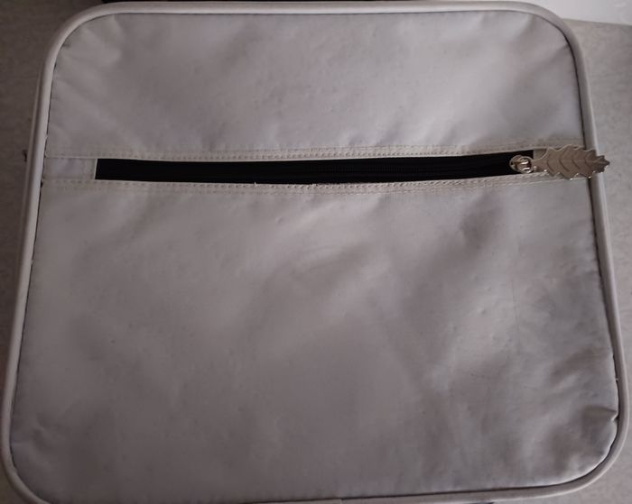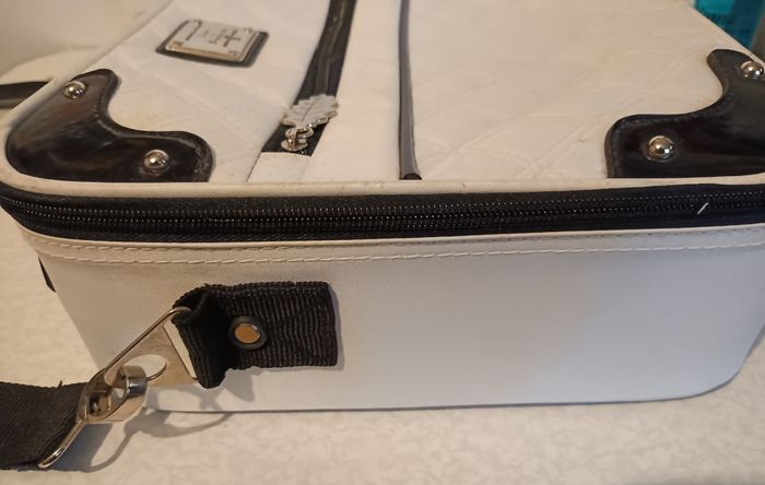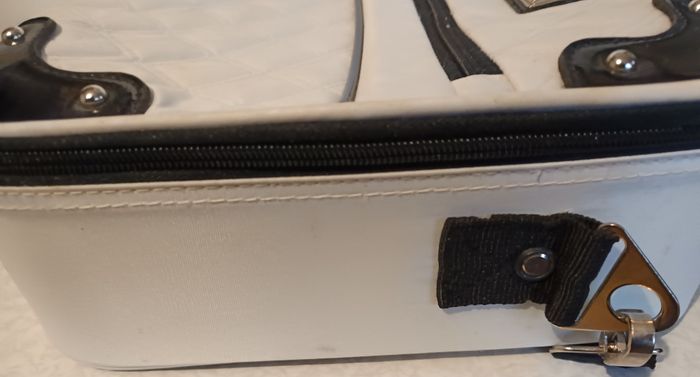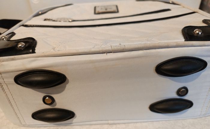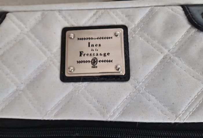 Sac de voyage Inès de la Fressange Blanc. Poignée et sangle, bon état. Peu de taches et peu de traces d'usures (voir photos) Dimensions environ 30*35*10 cm Toutes les fermetures sont fonctionnelles Plaque métallique de la marque présent à l'extérieur Etiquette présent de la marque présent à l'intérieur 2 Compartiments extérieur 2 Compartiments intérieur dont 1 grand principal et 1 pochette zip