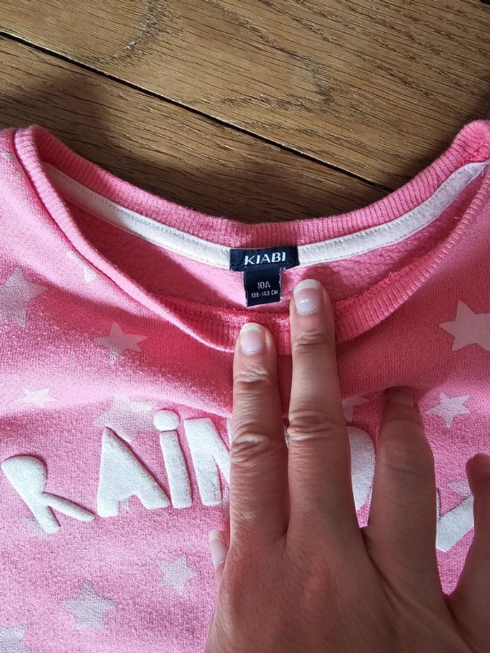 Pull rose étoiles et écriture - photo numéro 3