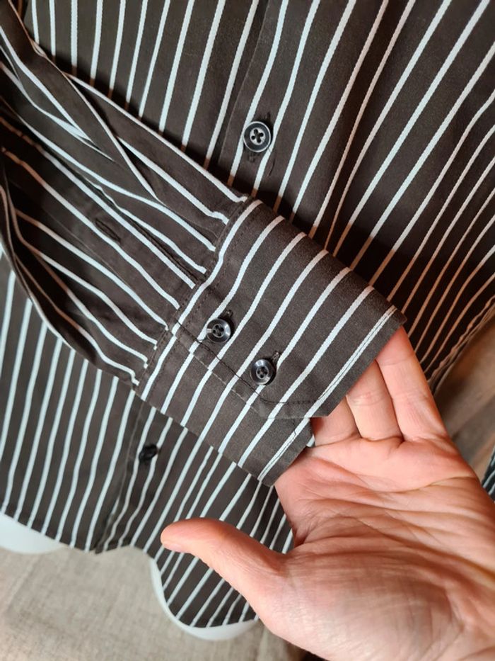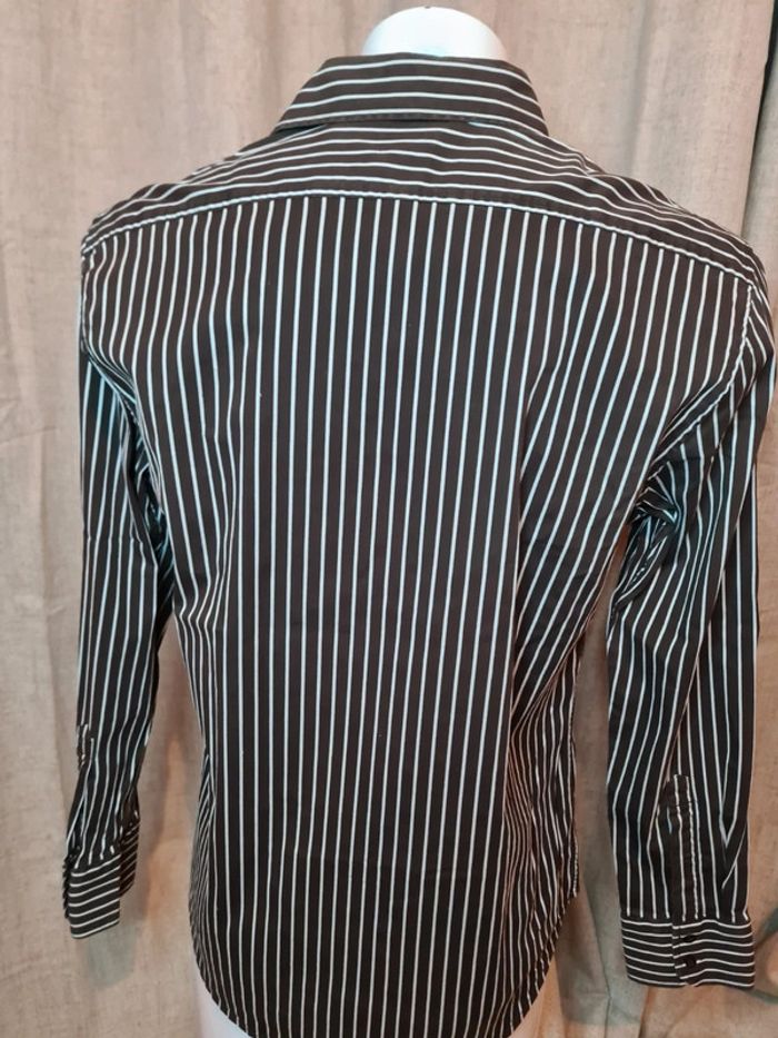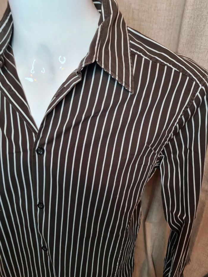 Chemise rayée coloris marron et bandes fines blanches Taille L 41/42 très bon état Composition coton et lycra pour son élasticité et confort #laethomcrav cliquez sur ce lien pour découvrir mes autres articles homme