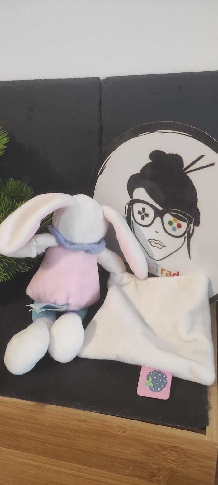 Berry lapin Doudou mouchoir rose violet hérisson mûre bn0241 blanc bleu Baby Nat - photo numéro 1