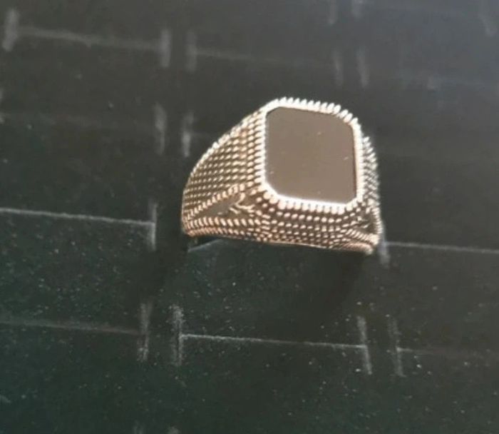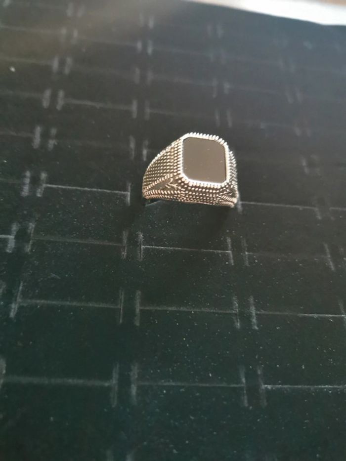 Chevalière homme acier et pierre noire T 11 - photo numéro 1