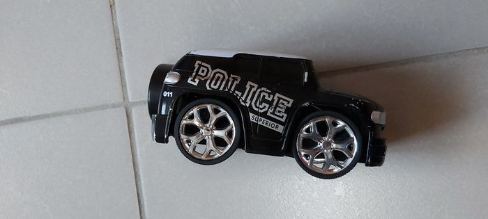 .Voiture police Fonctionne avec 2 piles 3 boutons : gauche musique ,milieu démarrage, droite démarrage et roulé vers l'avant #carineddijeux