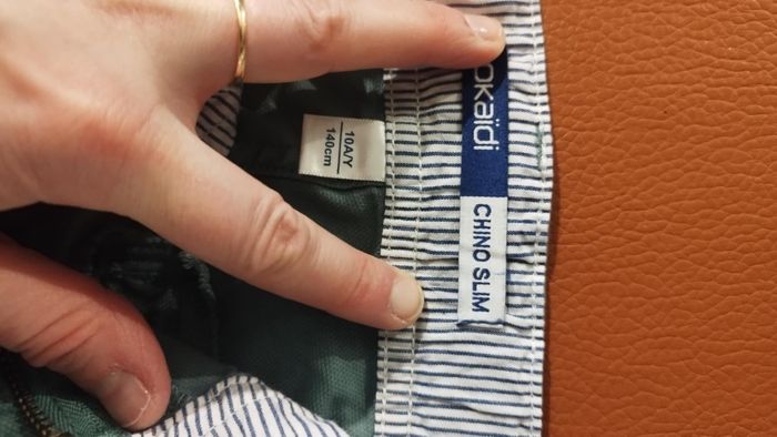 Pantalon Chino garçon Okaïdi 10 ans en parfait état. Coupe slim. Taille réglable par élastique. 9€