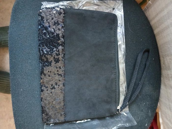 Pochette Neuve Nocibe Noir Paillettes Longueur 23 cm Largeur 0,5 cm Hauteur 17 cm