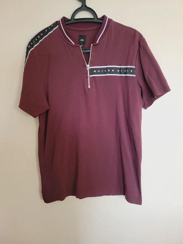 Polo bordeaux /violet foncé avec bandes noires #audreycouturierhomme38 #M #polo #t-shirt #riverisland